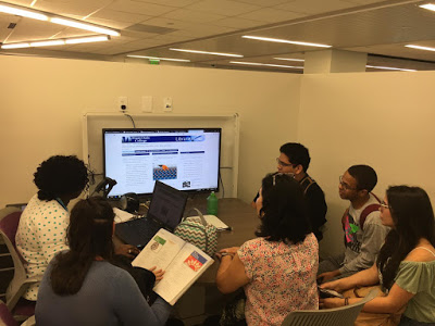 Here we have group 3 at the library learning new information explained by the lovely Valda Adeyiga who taught reliable ways to obtain information on research